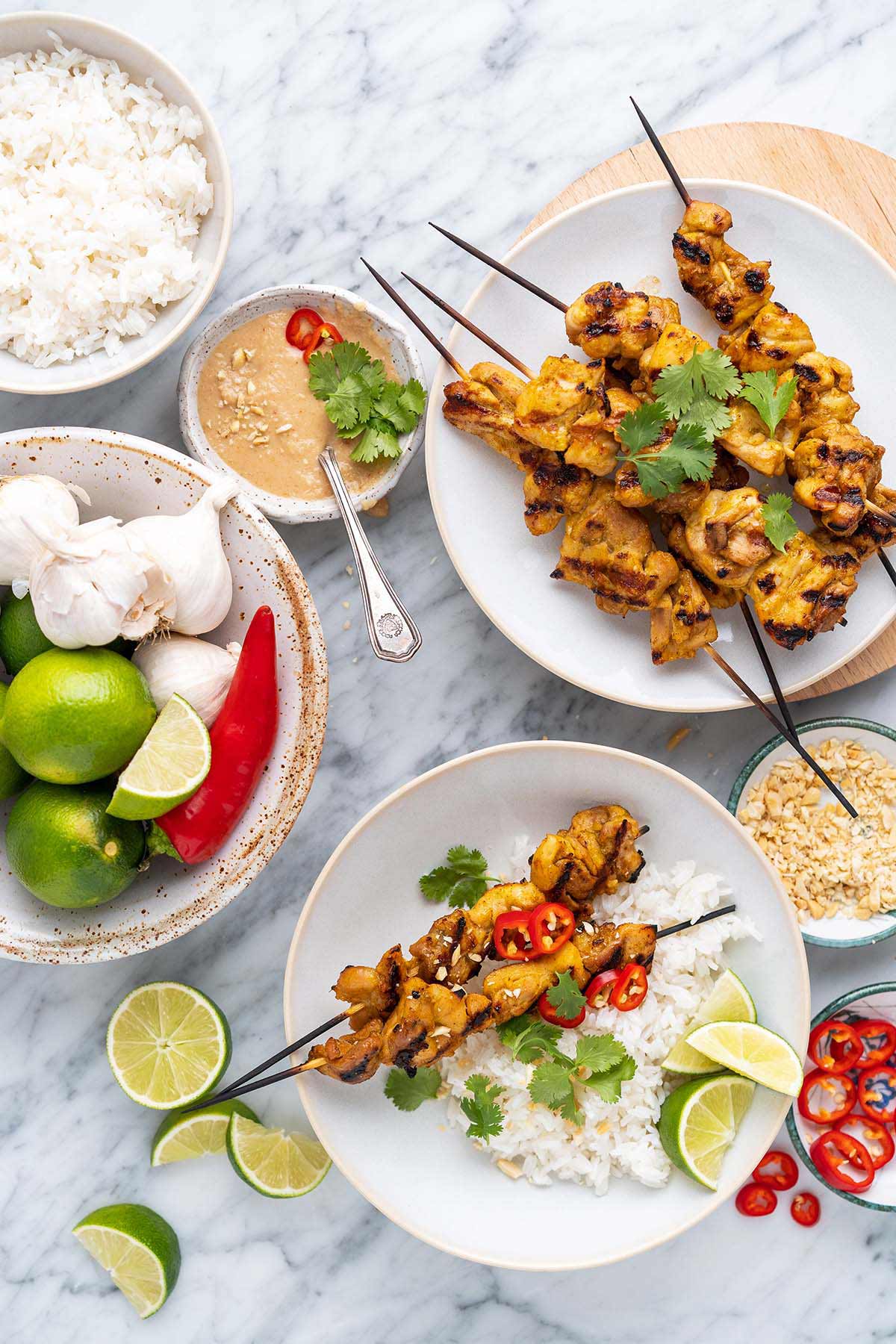 Stir together all ingredients for the chicken satay in a large bowl. Cover the bowl with plastic wrap and refrigerate at least 2 hours, or up to 24 hours.